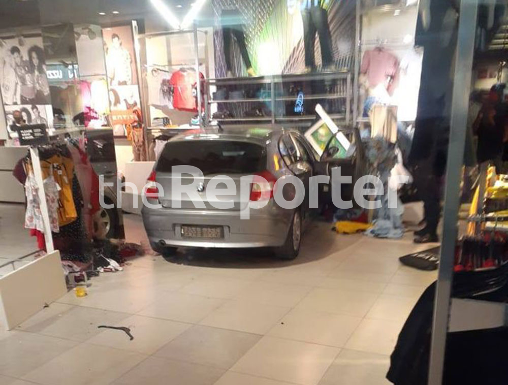 Pioneer Mall in central Maseru was a scene of commotion on Monday afternoon after a private vehicle inexplicably crashed into the mall, landing in one of the apparel stores.