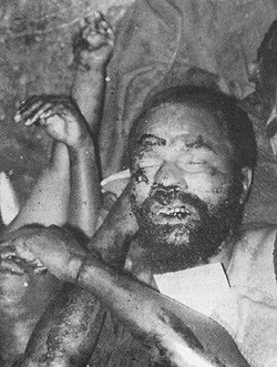 Shooting seemed to go on upstairs for some time, A rain coated White, painted black said, “I am coming to help Mike” as he went to the VW. He took something out of his pocket and threw it into the car, setting it alight. He thereafter ran up the stairs. After much sustained shooting upstairs, all three were later on their way out, when their attention was drawn to painful groans at the side of the flats. It was Gene. Matumo was already murdered. More shooting followed endlessly. Then there was an absolute silence punctuated by the burning crackle of the car. All of us were too stunned to move.