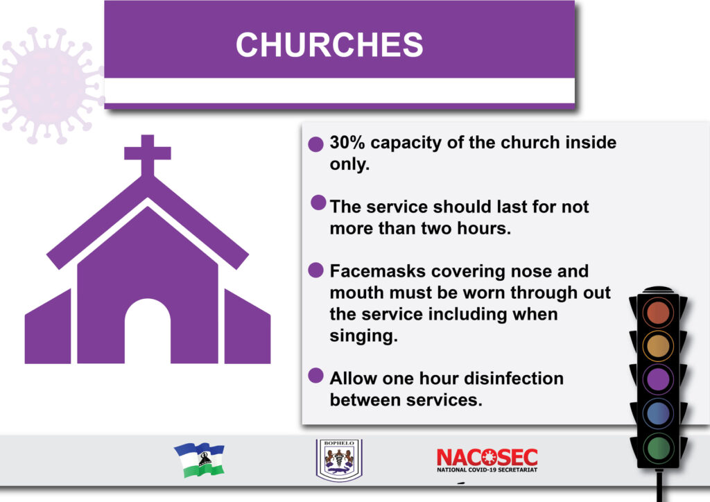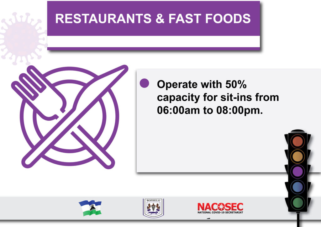 As Lesotho moves to Purple Level restrictions at 12 Midnight 23 July, 2021. Below are restrictions