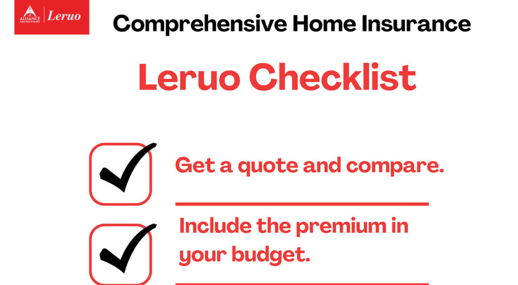 The best time to get the right cover is TODAY! Avoid the ‘Eish’ moment and stop procrastinating because disasters can strike anytime. Protect your wallet and safeguard your property by following these easy steps provided in the checklist. For more information, remember to consult your broker or visit Alliance Insurance at www.alliance.co.ls. Likhomo!